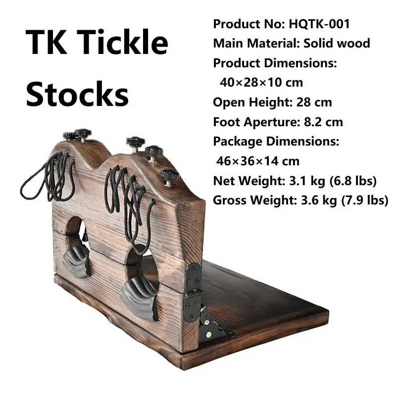 Designed for sensory play, interrogation scenes, and predicament bondage. Enables precise tickle torture control and power exchange dynamics.Solid TK wood tickling restraint board for secure foot and toe fixation.